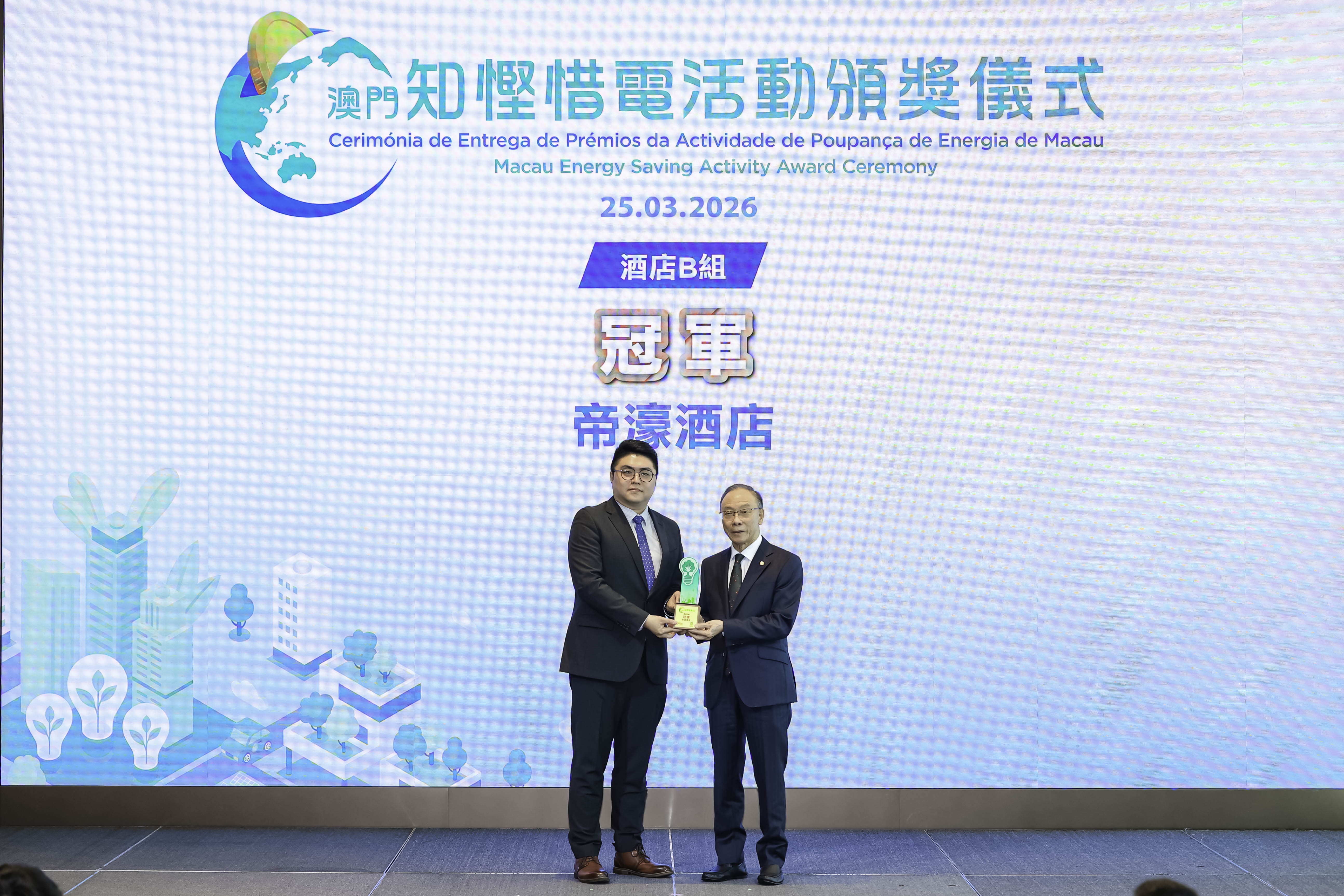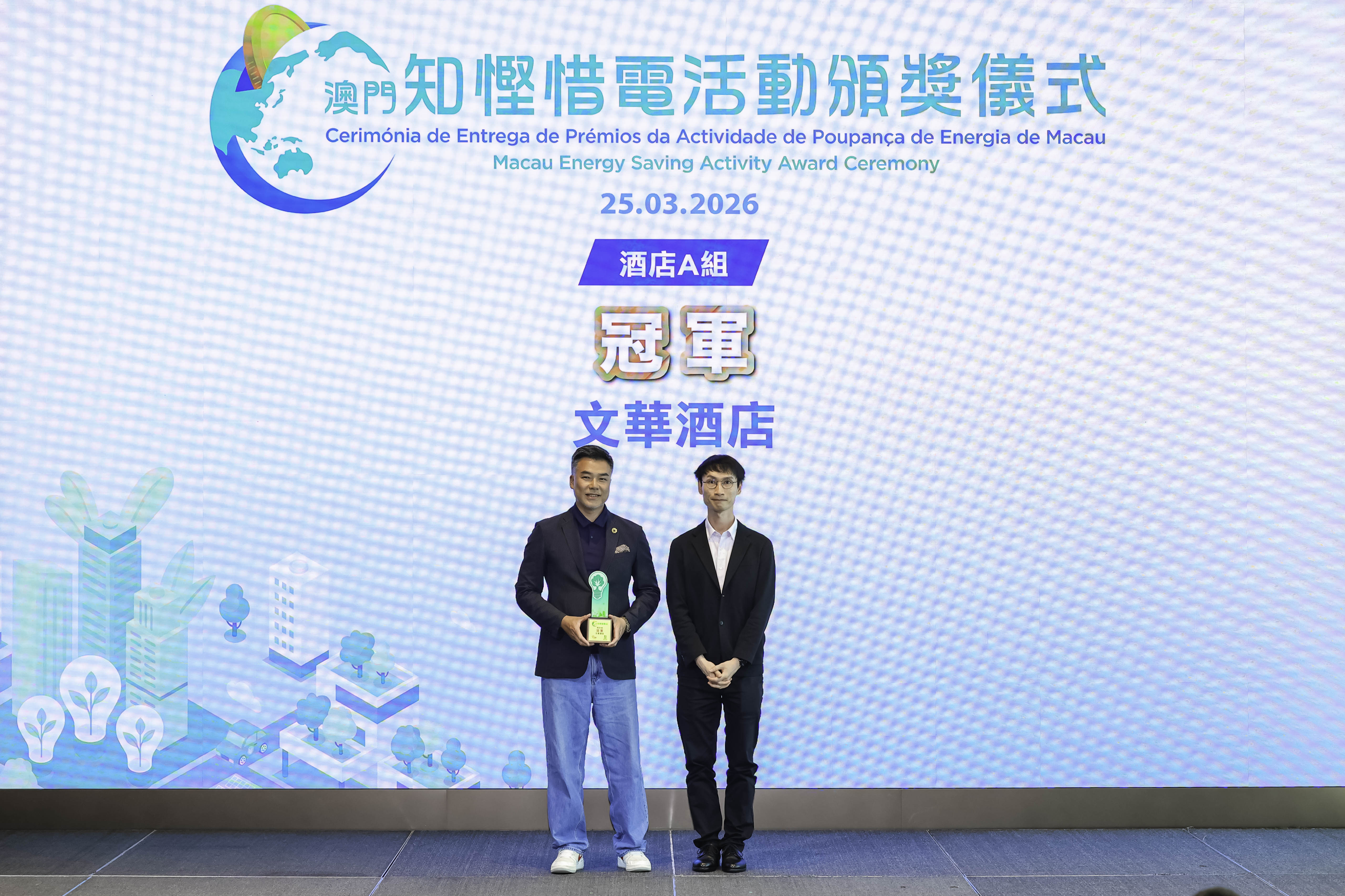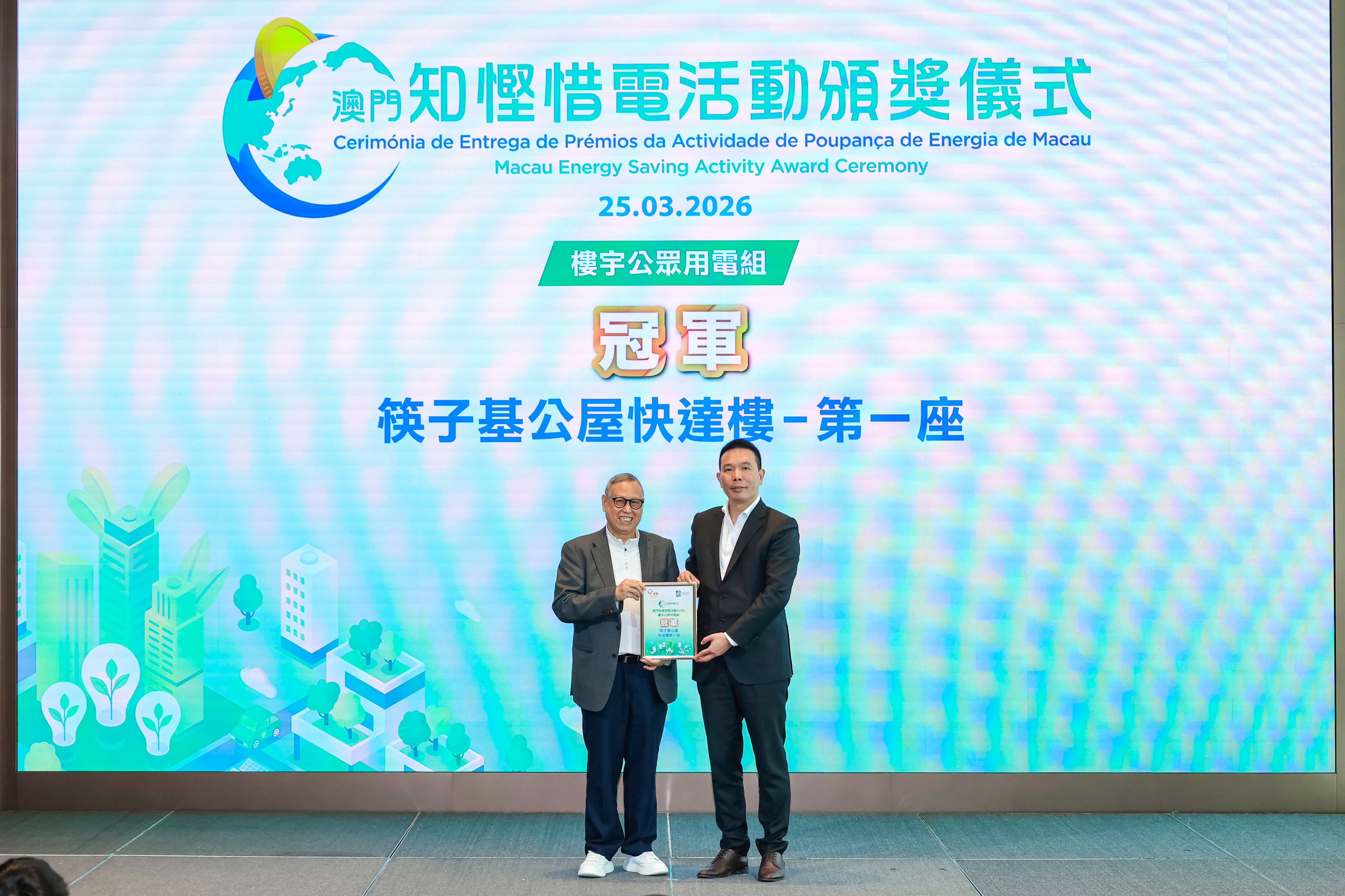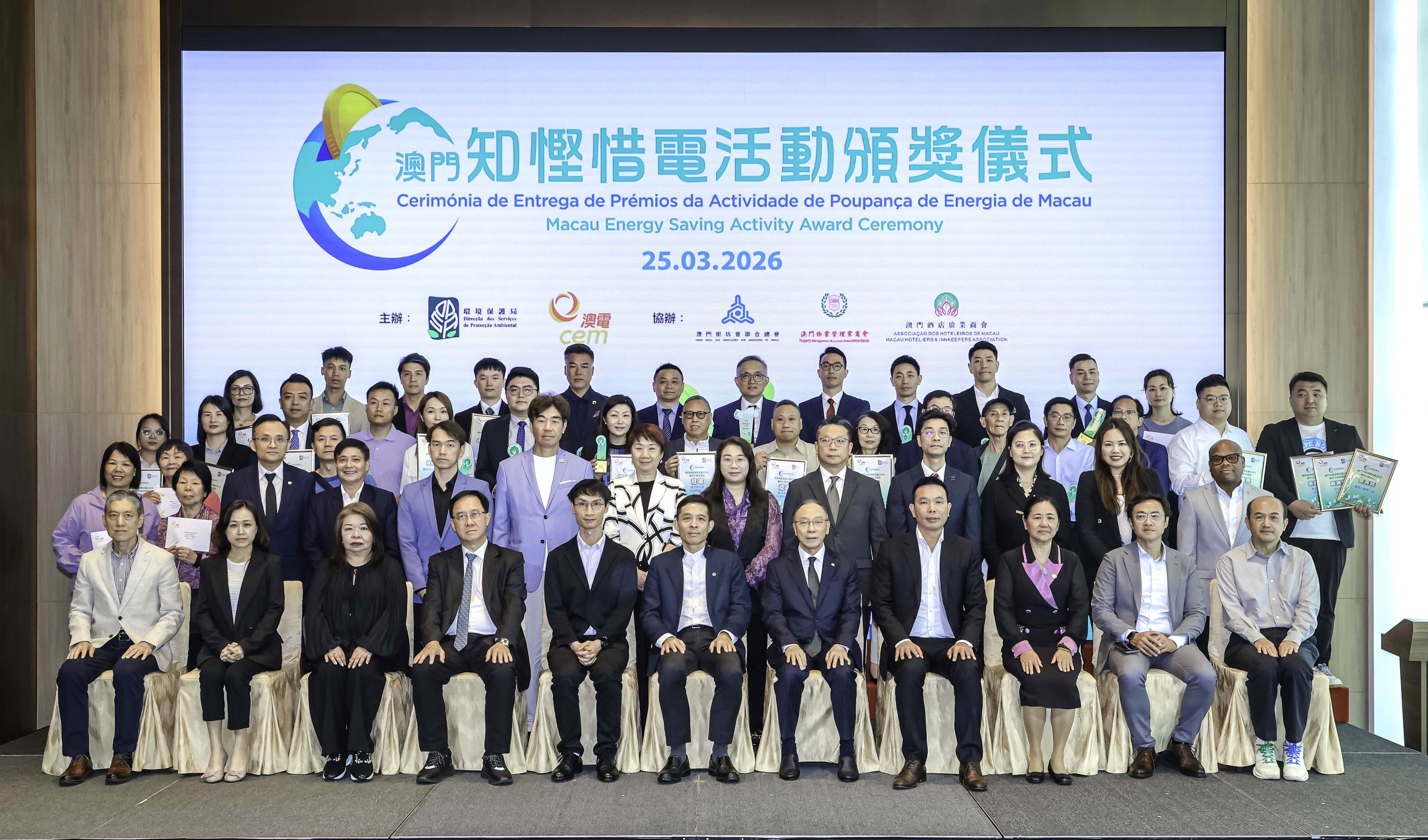 Co-organized by Companhia de Electricidade de Macau (CEM) and the Environmental Protection Bureau (DSPA), the "Macau Energy Saving Activity" has been held for the 17th consecutive year. In active alignment with the national "Dual Carbon Goals" and in support of the "Macau Long-term Decarbonization Strategy," the Activity aims to encourage Macau residents, hotels and property management industry to save energy and reduce carbon emissions, jointly promoting green development. The Activity received support and co-organization of General Union of Neighbor Association of Macao, Macau Hoteliers and Innkeepers Association as well as Property Management Business Association of Macau. An Award Ceremony was held this afternoon at the Macau Tower Convention and Entertainment Centre.