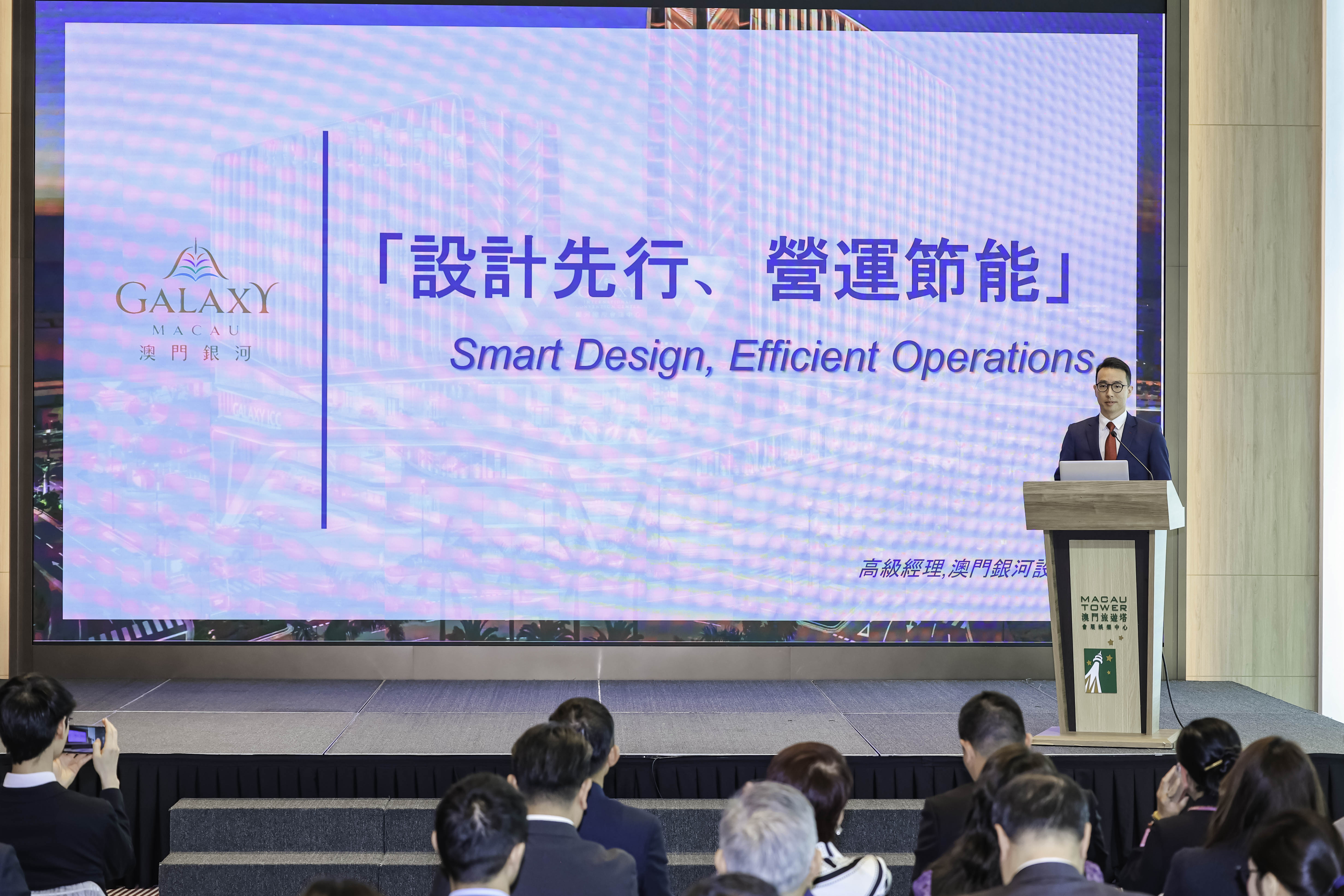 “Energy Saving Concept Award winner – Galaxy Macau” were invited to share their energy-saving measures at the Award Ceremony. Jeremias Chan, Facilities Management Senior Manager of Galaxy Macau stated that Galaxy Macau (GM) has long been committed to sustainable development and supports Macau’s vision of becoming a green, low‑carbon city. Following the principle of “Smart Design, Efficient Operations,” Phase III of GM designed with sustainability at its core and has received multiple green building certifications. The Galaxy International Convention Center incorporated highly efficient “Energy Center”, advanced HVAC systems, and vertical green walls to enhance energy efficiency and environmental quality. Operational measures include the use of iPaint roof coating for passive cooling by reflecting solar radiation, as well as energy‑saving strategies for large events and non‑event days. The Galaxy Arena is fully equipped with IoT sensors integrated with the Building Management System (BMS) for real‑time monitoring of indoor environments and equipment performance, supporting dynamic energy‑saving strategies and enhancing operational efficiency.